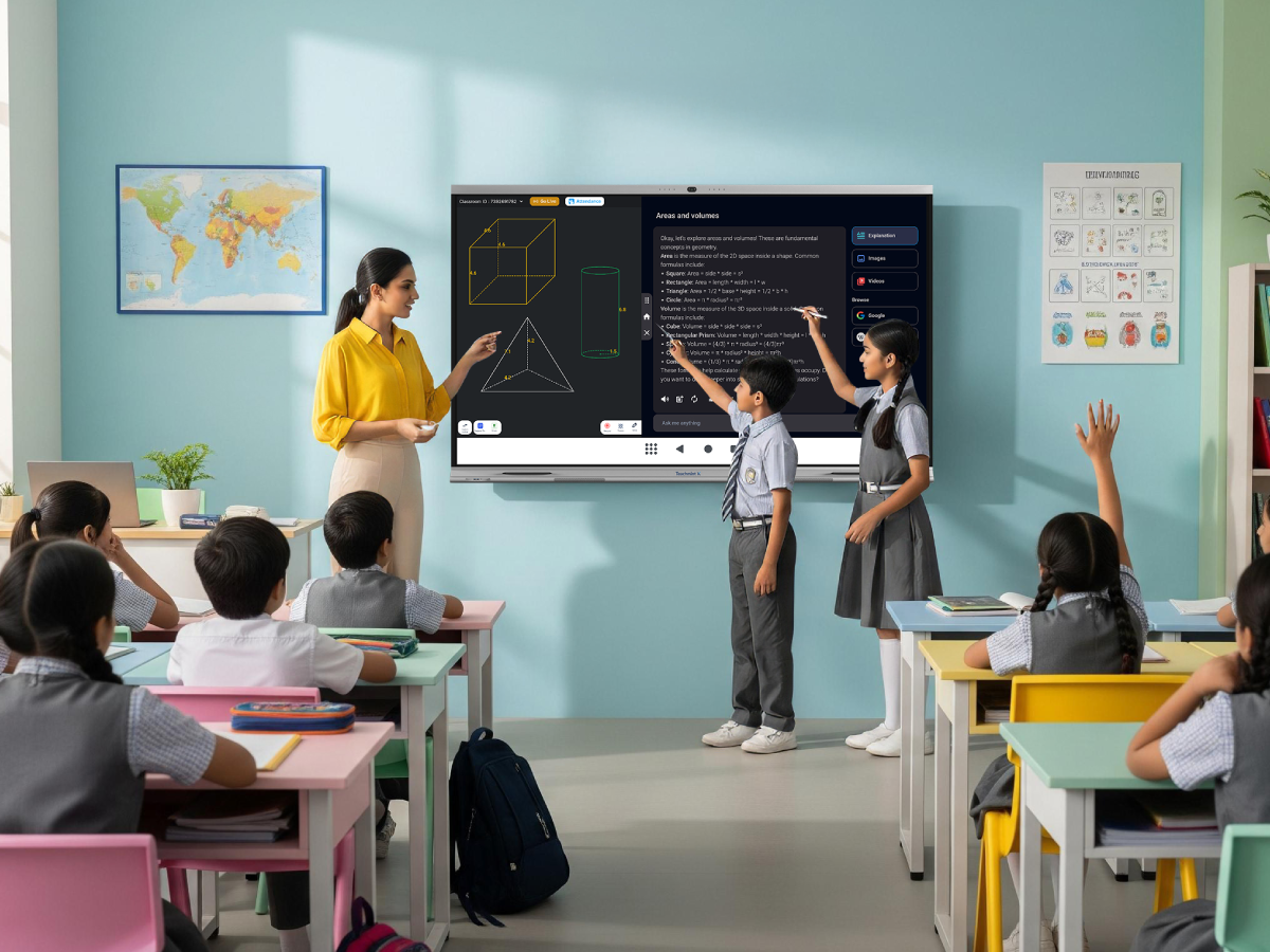 The interactive flat panel encourages active participation by allowing multi-touch interaction, digital annotations, and instant content sharing. When combined with EduAI in the Teachmint X panels it ensures lessons are more engaging, personalized, and interactive.